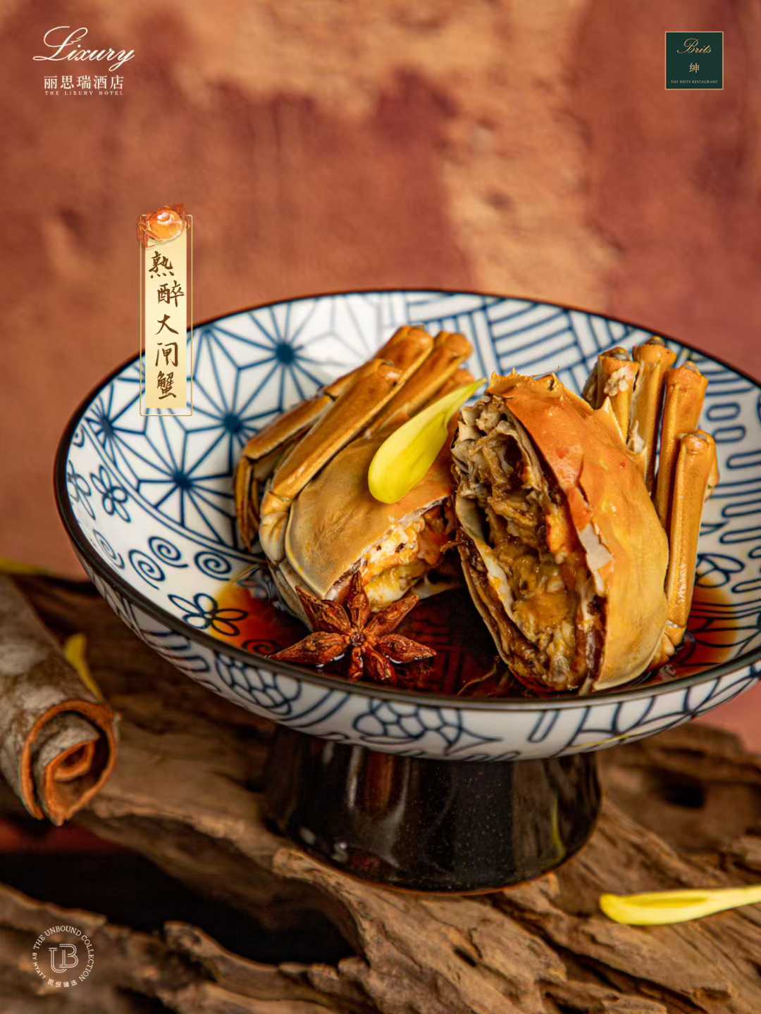 熟醉大閘蟹用伏特加花雕酒與二十余味香料精心浸釀,琥珀色的蟹殼內(nèi)蘊(yùn)藏著酒香回蕩的溫柔。微醺的甘醇滲透每絲蟹肉,冰涼口感與馥郁酒香在味蕾綻放出詩意悠長。