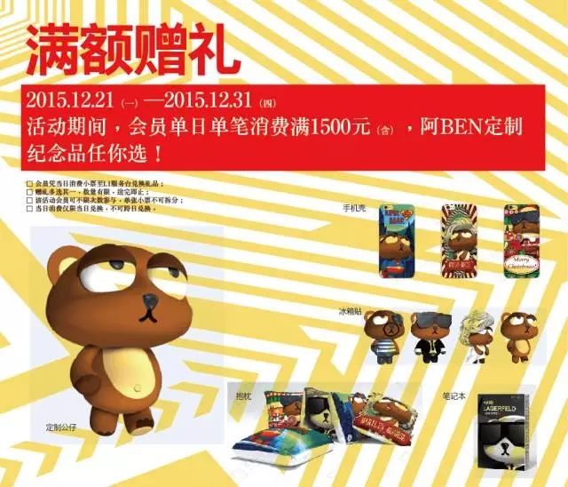 單筆消費滿1500元,毛絨公仔、手機殼、抱枕、筆記本、冰箱貼,阿BEN定制紀念品任你選!